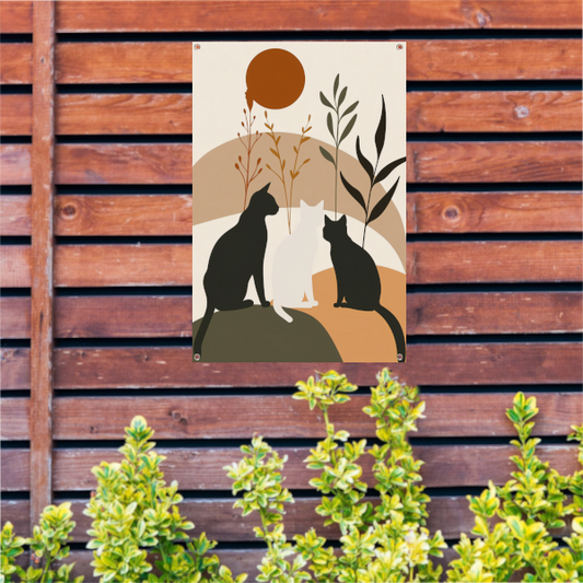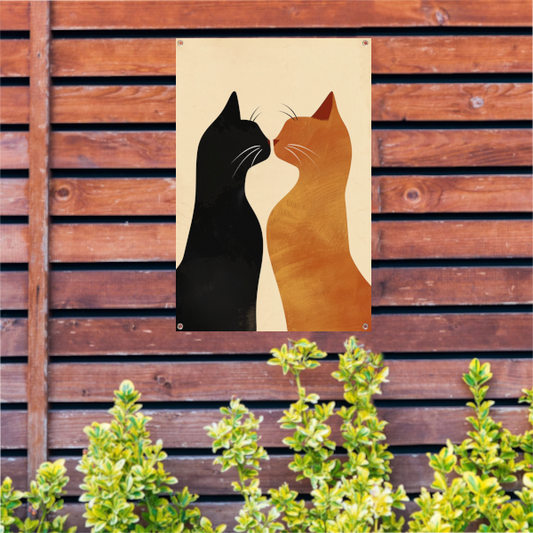 Twee katten in liefdevolle pose met aardetinten tuinposter