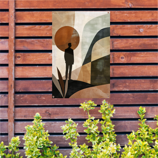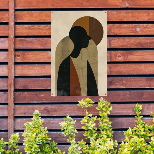 Abstract silhouet met geometrische vormen en neutrale kleuren tuinposter