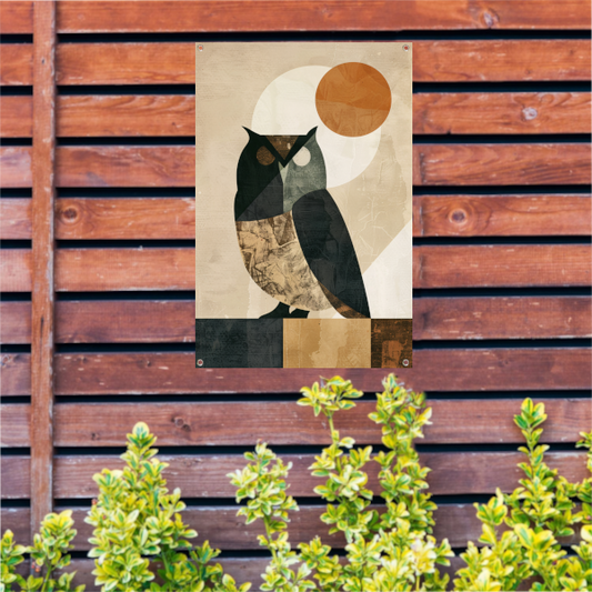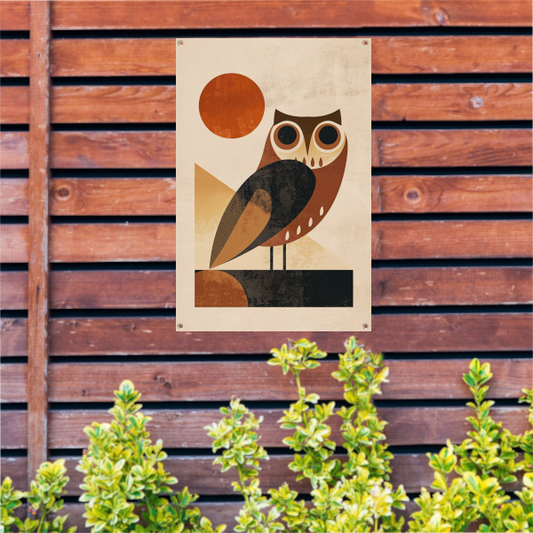 Gestileerde uil in art deco stijl met zon tuinposter