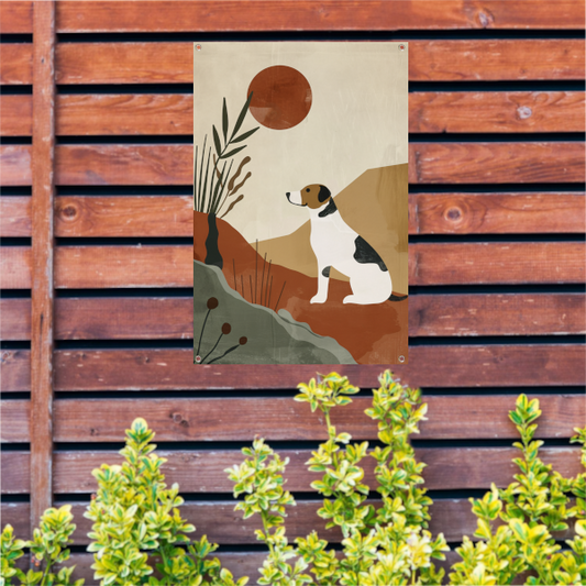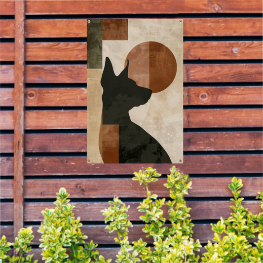 Abstracte hond in geometrische stijl met neutrale kleuren tuinposter