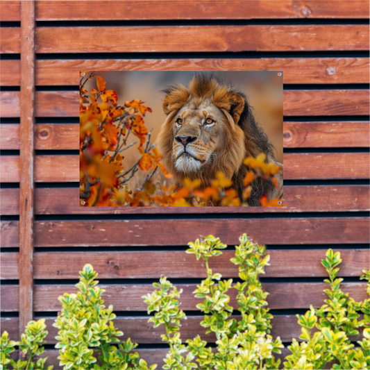 Leeuw in Herfstbladeren - Natuurs Koningschap tuinposter