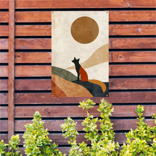 Minimalistische Kat en Maan in Aardetinten tuinposter