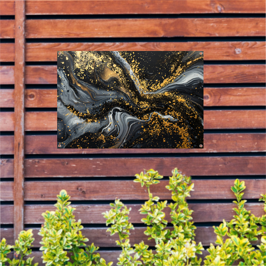 Dynamisch Golvend Abstract Goud en Zwart tuinposter