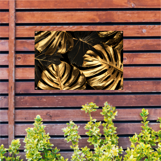 Luxe Gouden Monstera Bladeren op Zwart tuinposter