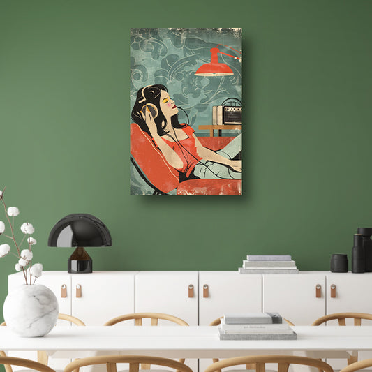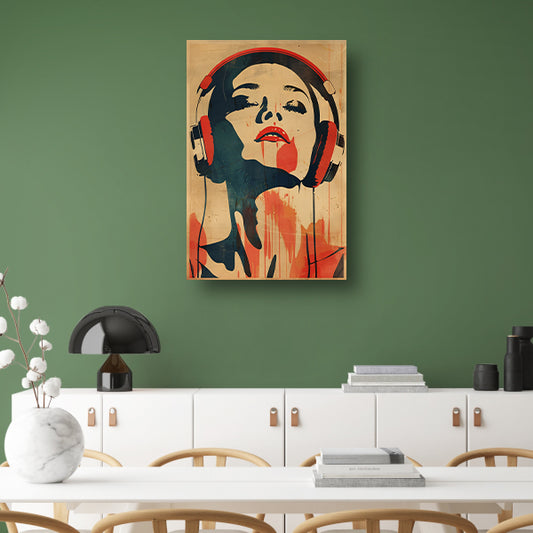 Vintage Hoofdtelefoon op Gekleurde Achtergrond poster