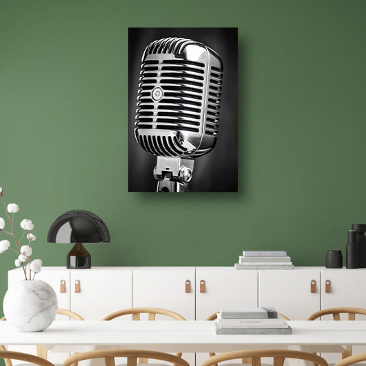 Close-up vintage microfoon in zwart-wit poster