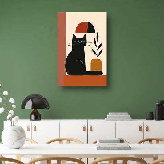 Minimalistische Zwarte Kat met Plant poster