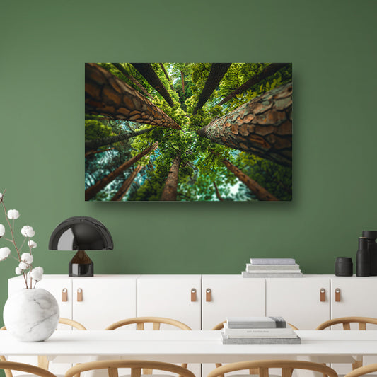 Hoog perspectief op bomen in weelderig bos acrylglas