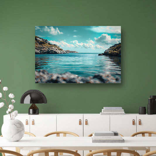 Rustgevende lagune met rotsachtige kusten acrylglas