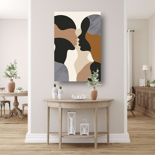 Intimiteit van Twee Gezichten in Aardetinten canvas met baklijst