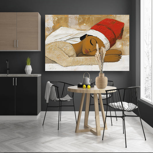 Slapende vrouw met rode hoed schilderij canvas