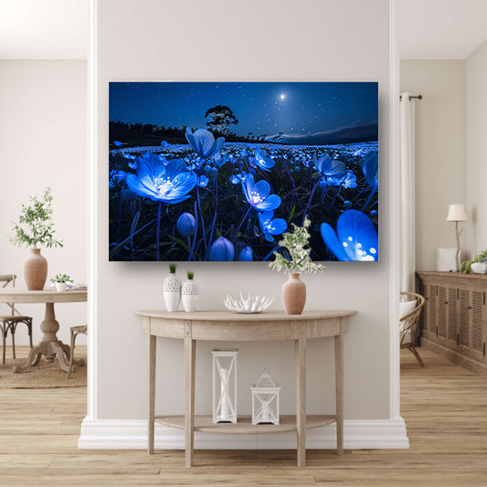Bioluminescente bloemen in een sterrenhemel acrylglas