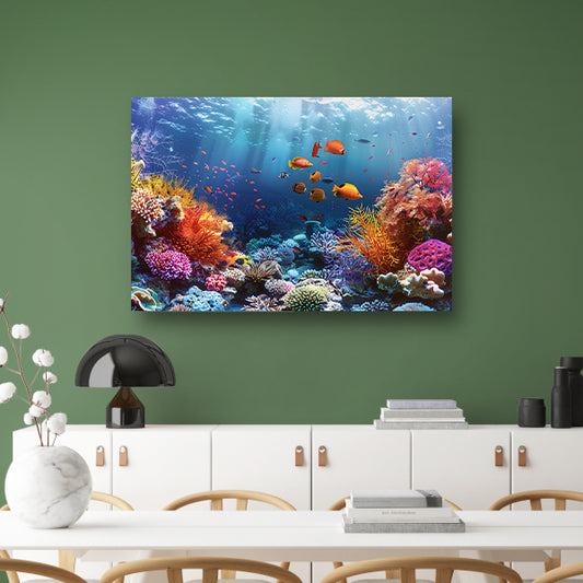 Levendig koraalrif vol kleurrijke vissen acrylglas