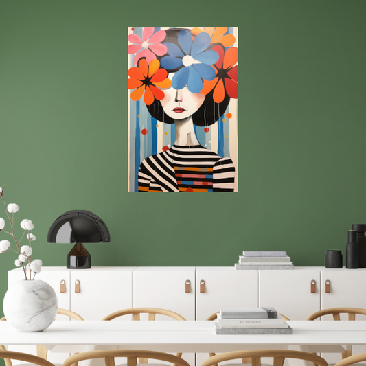 Gekleurde Bloemen op Zwart-wit Strepen canvas