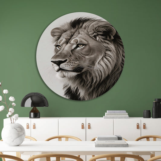 Majestueuze Leeuw in Monochrome Essentie forex muurcirkel