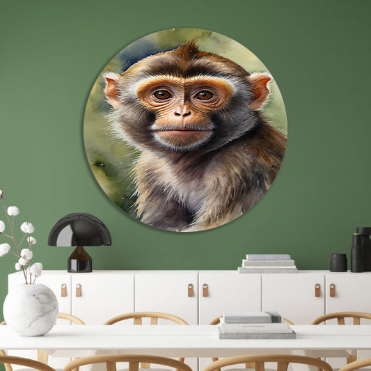 Jonge Aap in Aquarel Waterverf Stijl forex muurcirkel