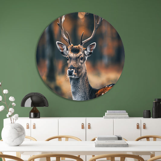 Hertenclose-up met dromerige natuurachtergrond aluminium muurcirkel