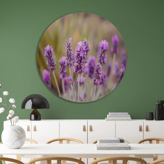 Levendige paarse lavendelbloemen in natuurlijke omgeving aluminium muurcirkel