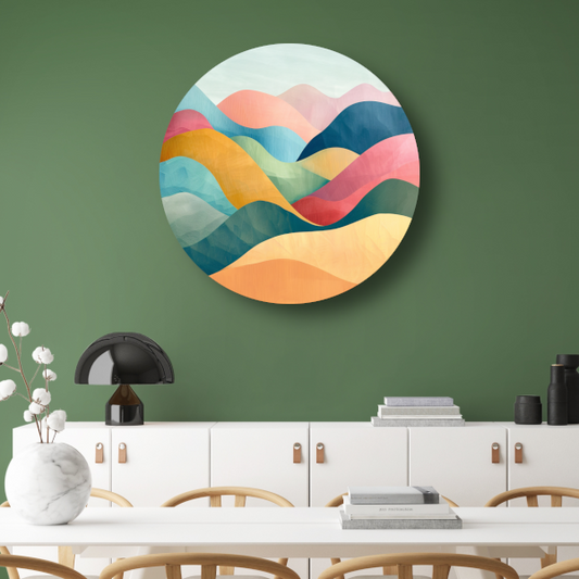 Abstracte Pastelkleurige Bergen in Harmonieuze Golven aluminium muurcirkel