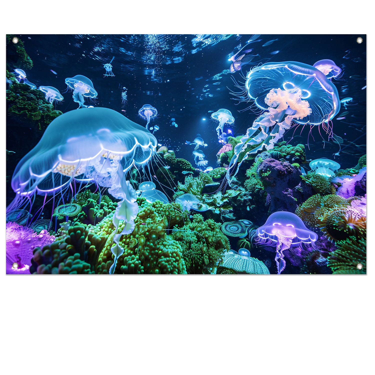 Onze tuinposters zijn van stevig materiaal dat regen, wind en zon trotseert. Ze blijven jarenlang mooi zonder te verkleuren. Hang ze eenvoudig op aan een schutting, muur of hek met handige ringen in de hoeken.