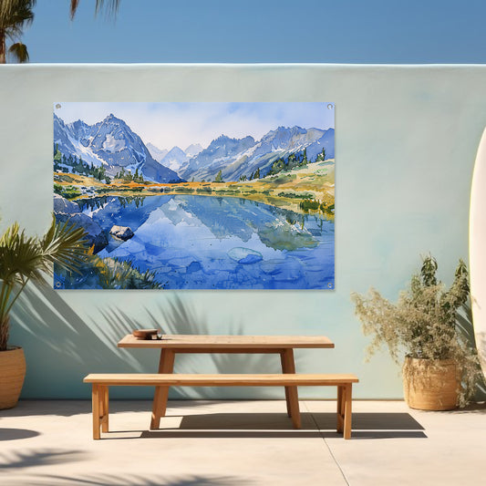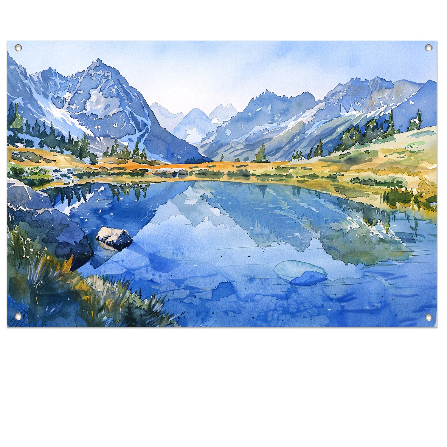 Serene Bergmeren met Reflecties in Aquarel tuinposter