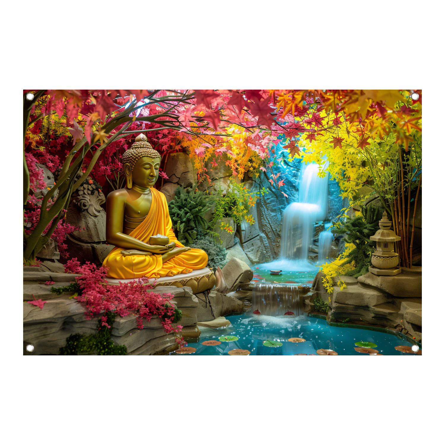 Zen-tuin met waterlelie en geharkt zand tuinposter
