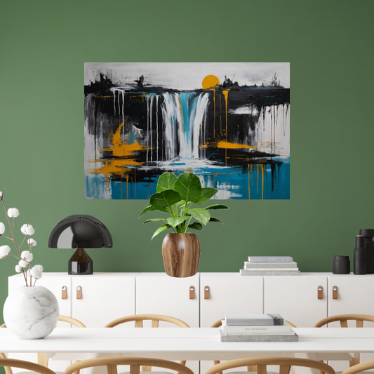 Abstracte Waterval in Monochroom met Kleuraccenten poster