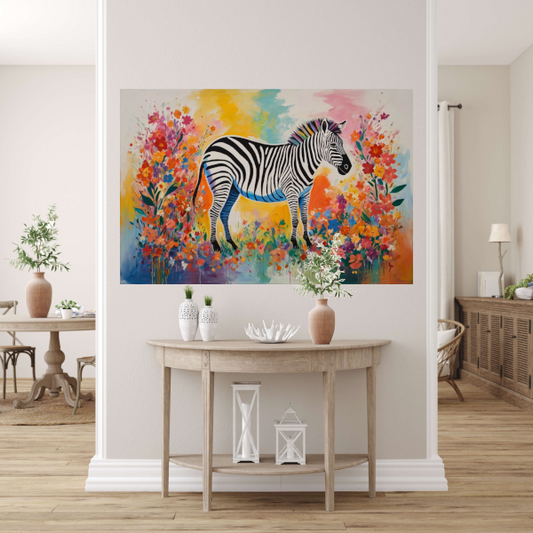 Zebra in Bloeiend Kleurrijk Bloemenparadijs poster