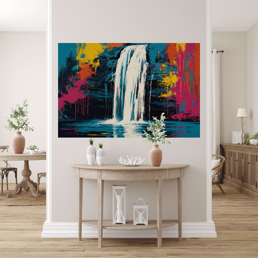 Abstracte Waterval in Levendige Kleurenexplosie poster