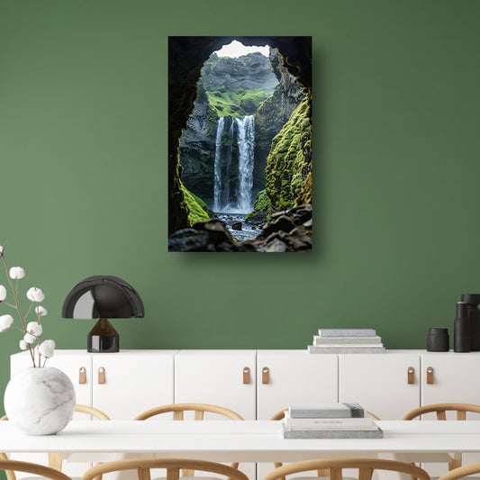Waterval in een Groene Grot canvas
