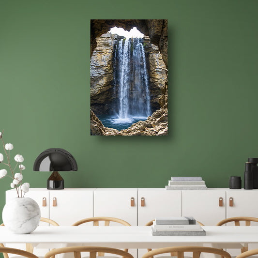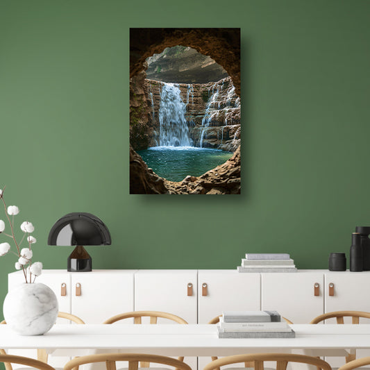 Waterval omlijst door rotsvenster canvas