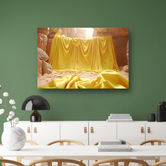 Gele doek in natuurlijke grot omgeving acrylglas