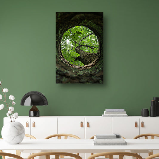 Boom gezien door een gat in de schors canvas