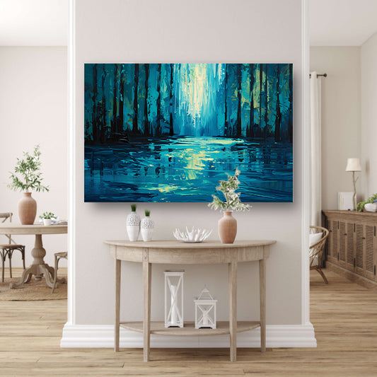 Surrealistisch schilderij van een boslandschap acrylglas