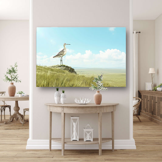 Elegante vogel op een grasheuvel schilderij acrylglas