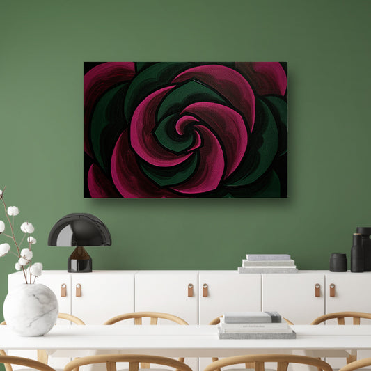 Abstract schilderij van bloem in groene en roze tinten acrylglas