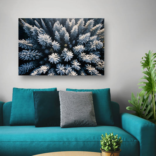 Besneeuwde bomen in winterse boslandschap acrylglas