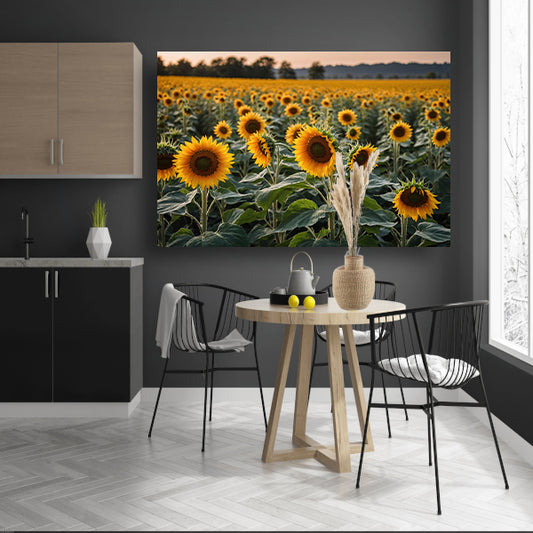 Uitgestrekt zonnebloemveld bij zonsondergang acrylglas