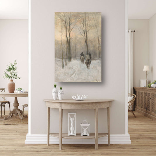 Ruiters in de sneeuw in het Haagse Bos - Anton Mauve poster