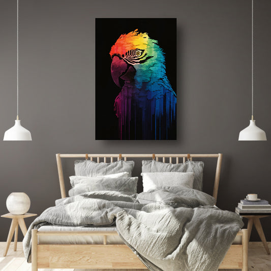 Regenboogkleurige papegaai in abstracte kunst acrylglas