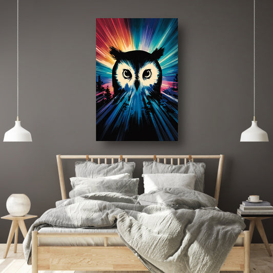 Kleurrijke uil met dynamische achtergrond acrylglas