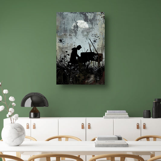 Silhouet pianist onder maanlicht canvas