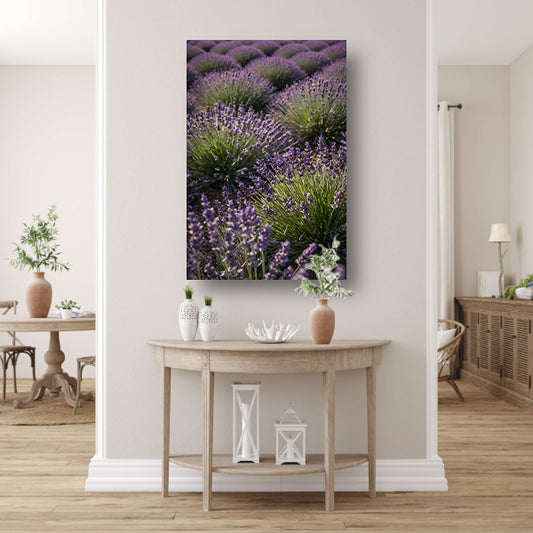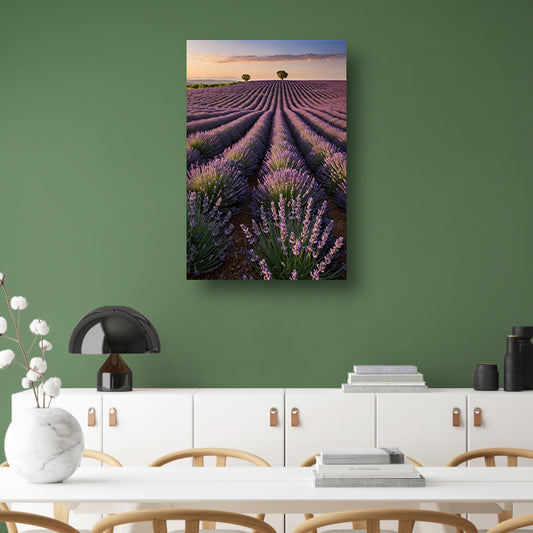 Uitgestrekt lavendelveld bij zonsondergang acrylglas