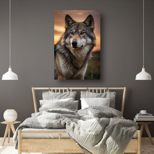Majestueuze wolf bij prachtige zonsondergang acrylglas