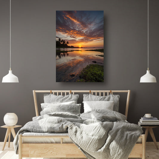 Adembenemende zonsondergang weerspiegeld in water acrylglas