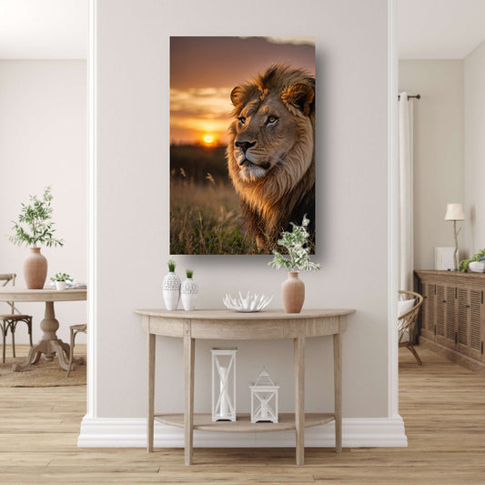 Majestueuze leeuw bij adembenemende zonsondergang acrylglas