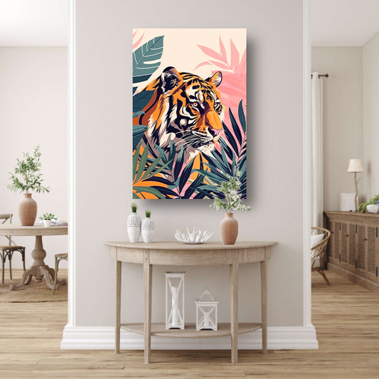 Kleurrijke tijger tussen tropische bladeren acrylglas