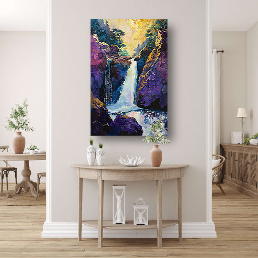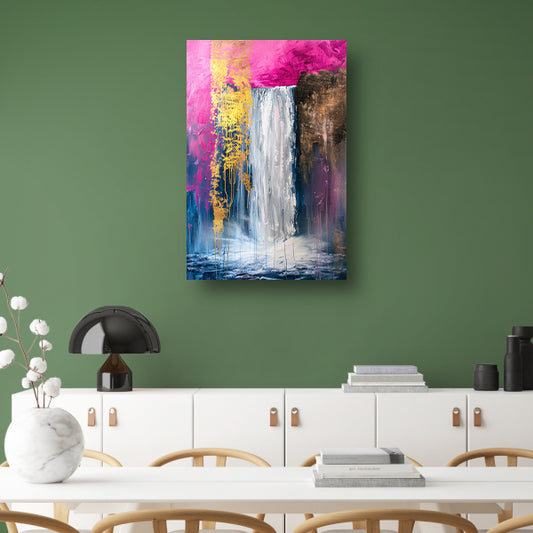 Kleurrijke abstracte waterval met levendig landschap acrylglas