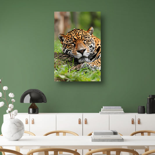 Realistisch luipaard schilderij met paarse bloemen acrylglas