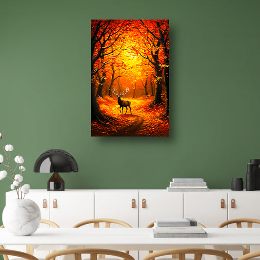 Hert in kleurrijk herfstbos met bladeren acrylglas